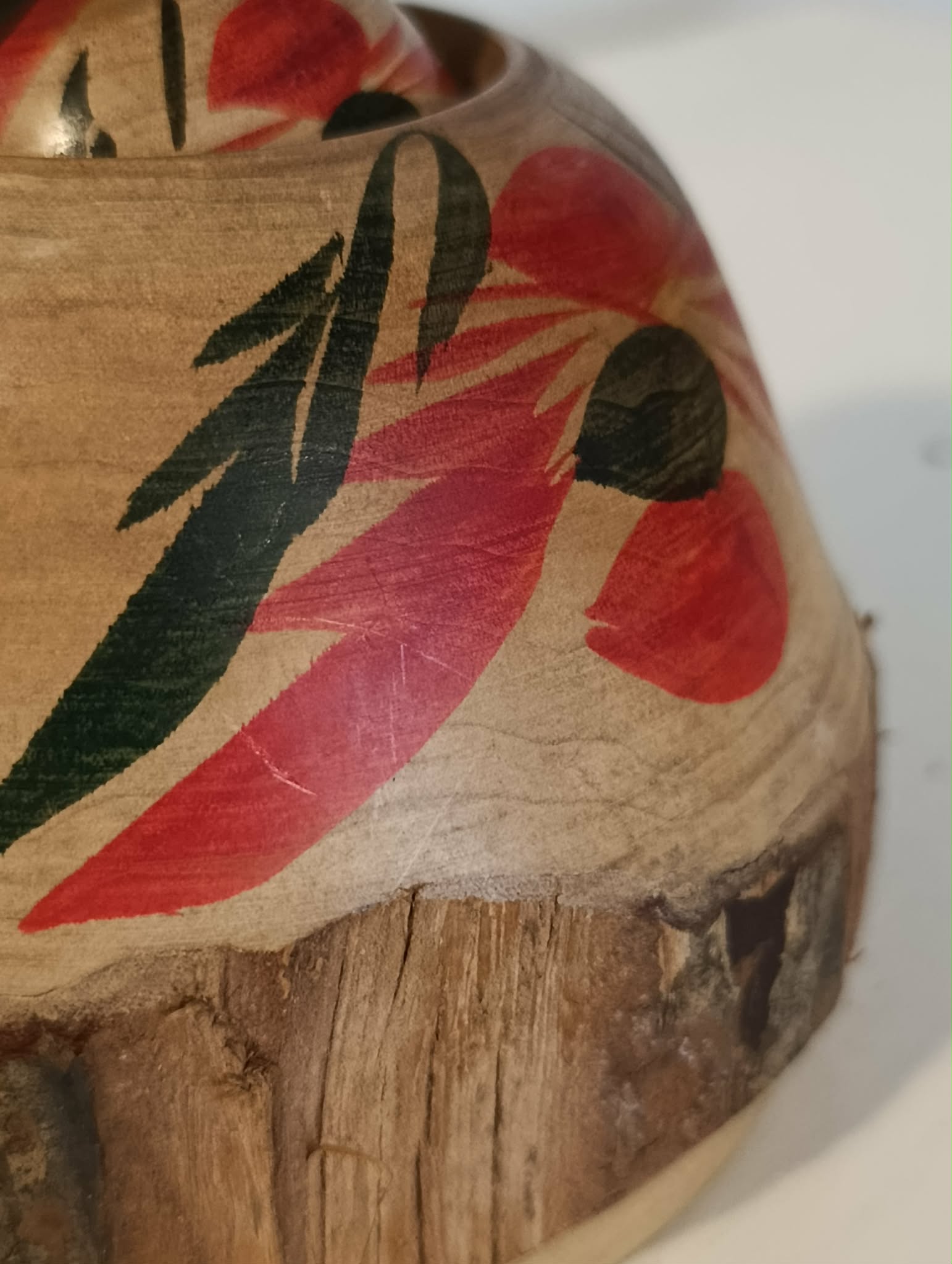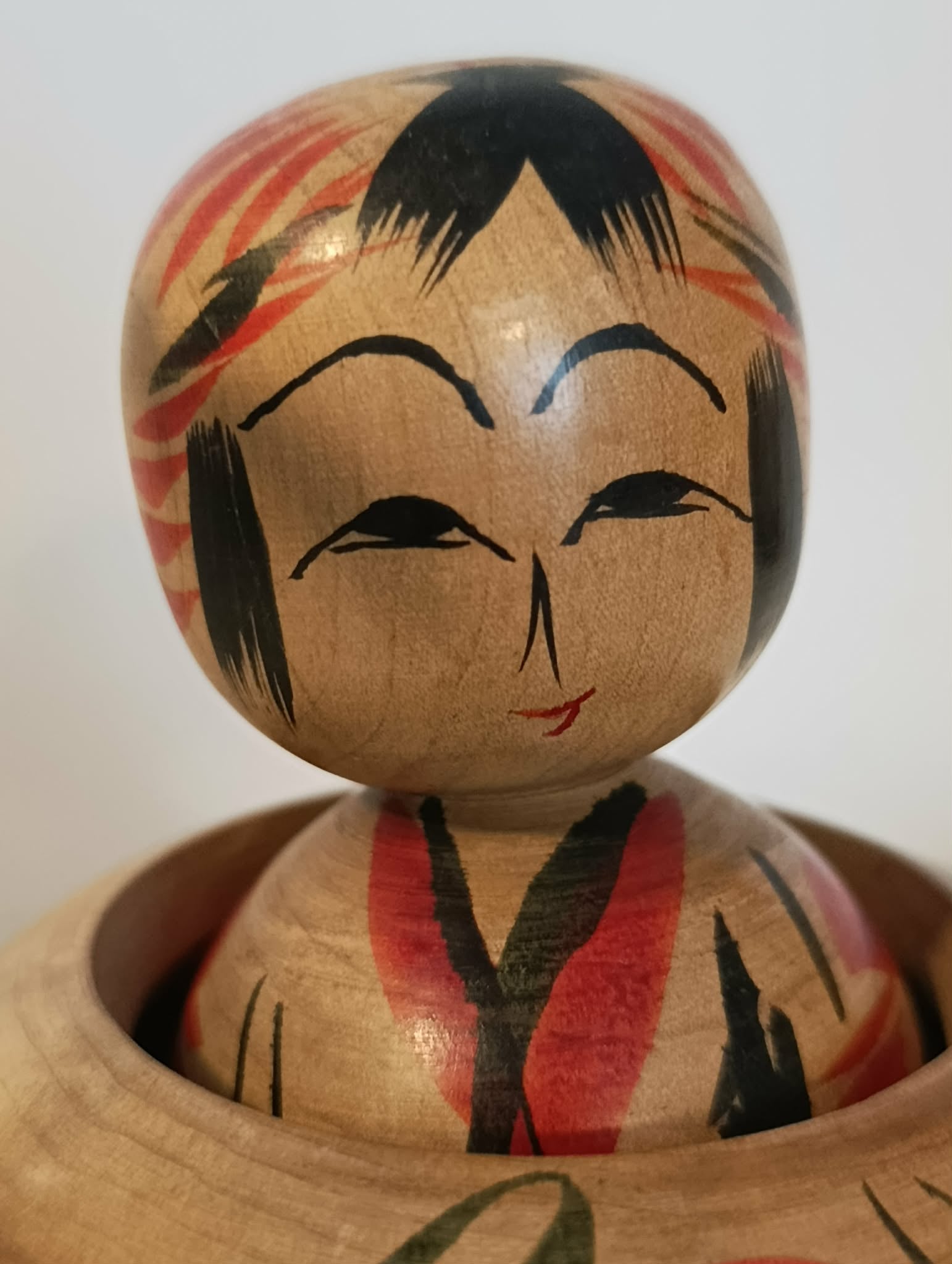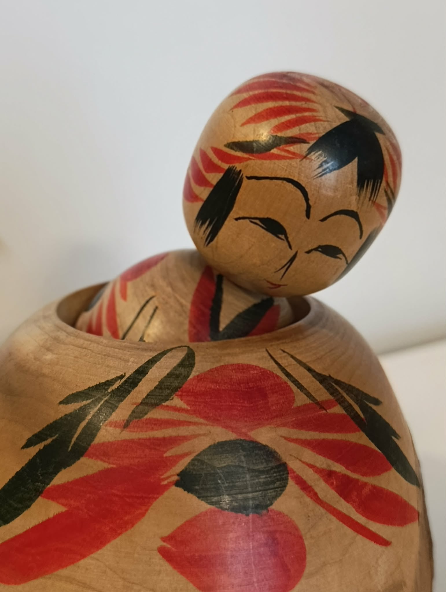 Superbe Ejiko ( Togatta ) vintage, par le rare Agatsuma Yoshio . Cette pièce (bien plus ronde que ne le montre l'image) sculptée et tournée dans sa branche, laisse apparaitre encore, une belle écorce et une question: Comment l'artisan a-t-il fait pour créer le vide qui rend l'enfant "libre de ses gestes" ? Une merveille ......... Hauteur 15 cm, Ø 12 cm, circonférence max 37 cm. Années 60.