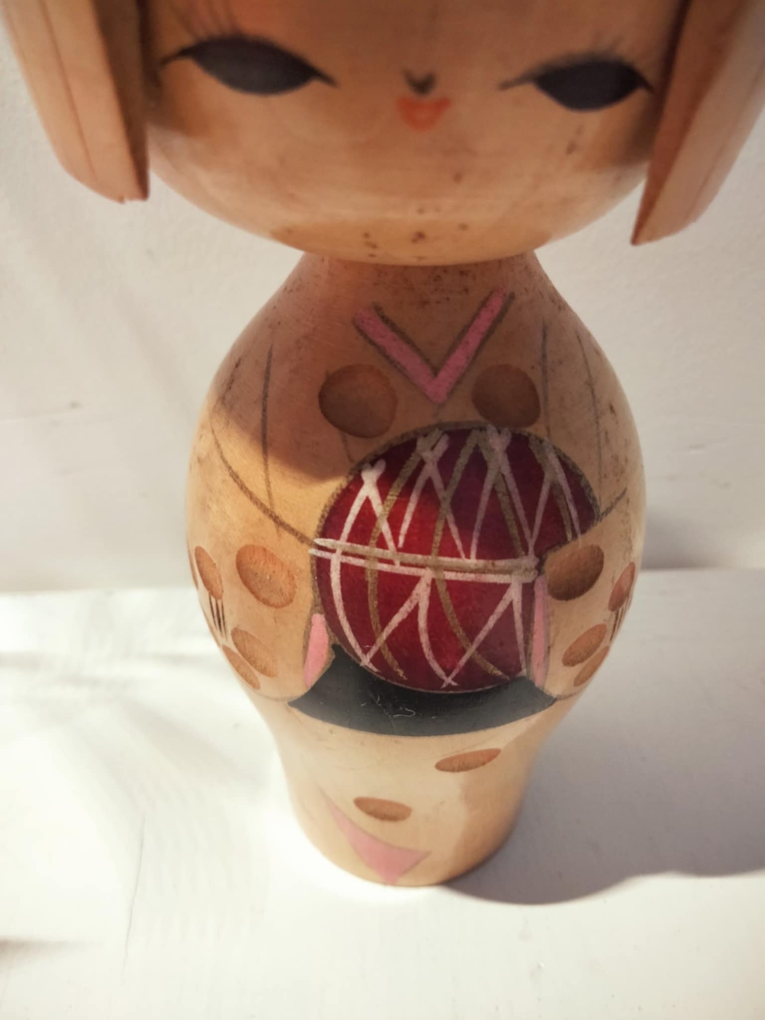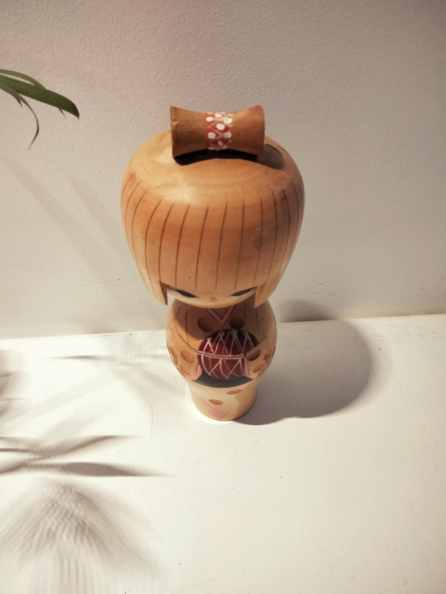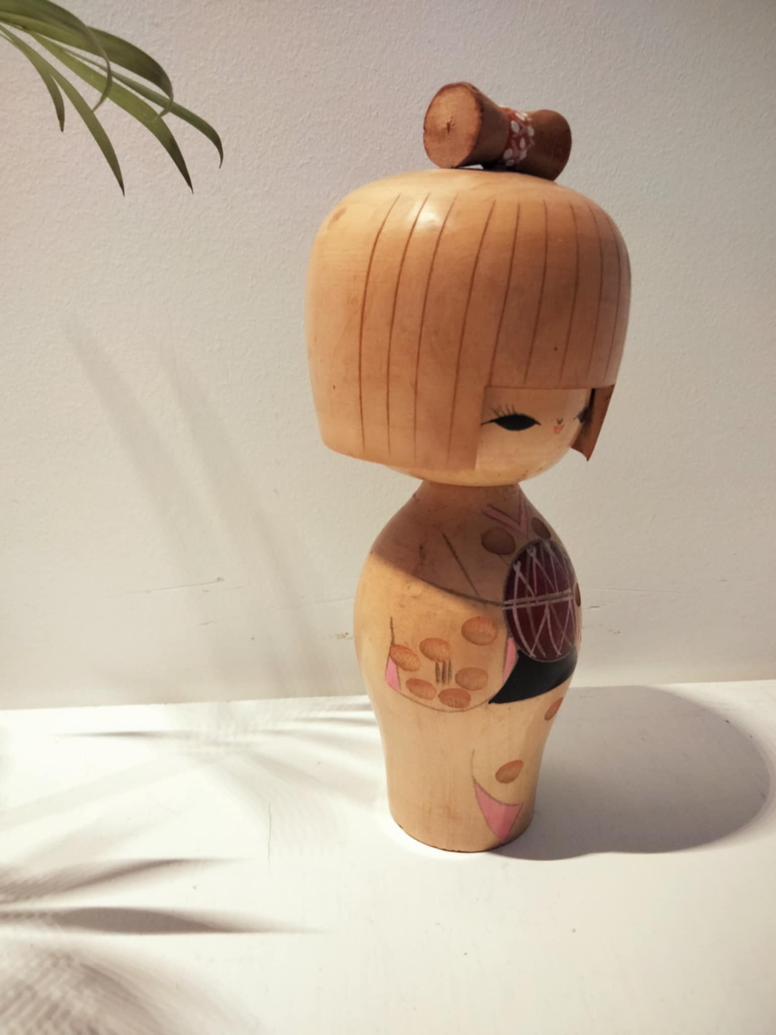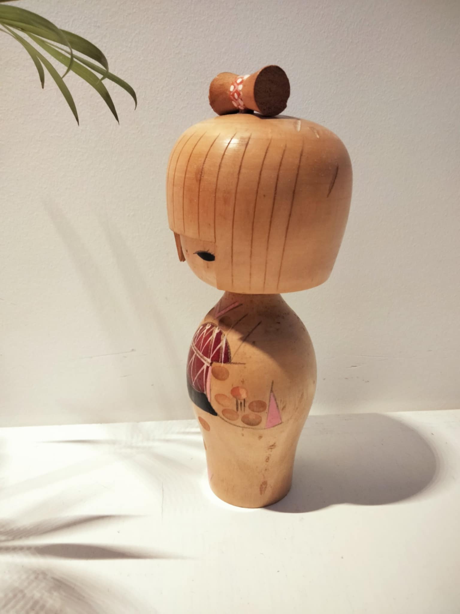Kokeshi sosaku vintage, par Kojo Tanaka . Une célébrité déclinée en de nombreuses dimensions . Cette petite là , arrivée il y a peu de son Japon natal , est prête pour l'adoption , dans une nouvelle famille , pour diffuser amour et sérénité. Hauteur 17 cm, années 70.