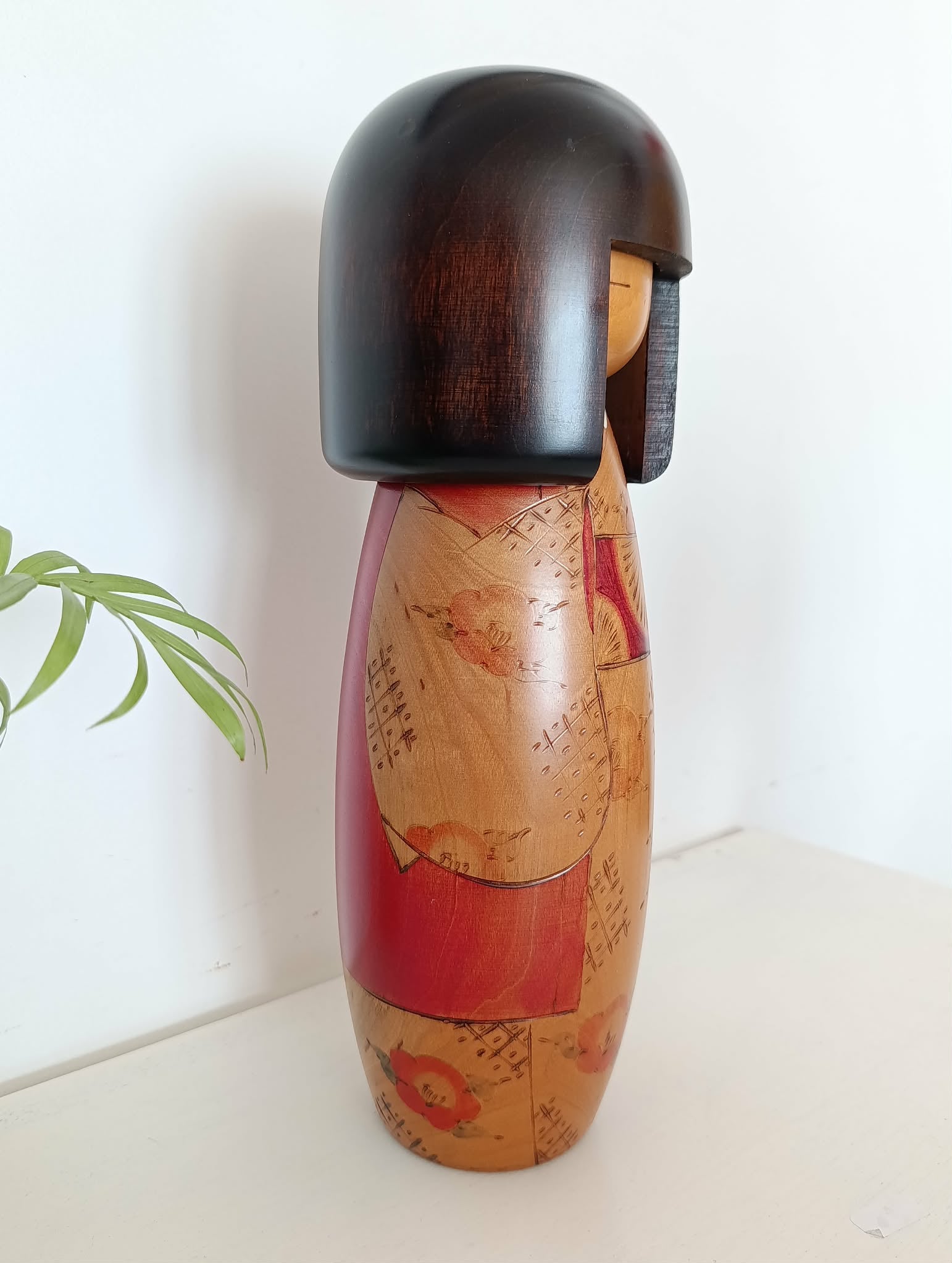 Très imposante gumma vintage ( 31.5 cm, 1kg 220 ) , par Usaburo . Superbe kimono fleuri, aux doux contrastes... Années 90 .