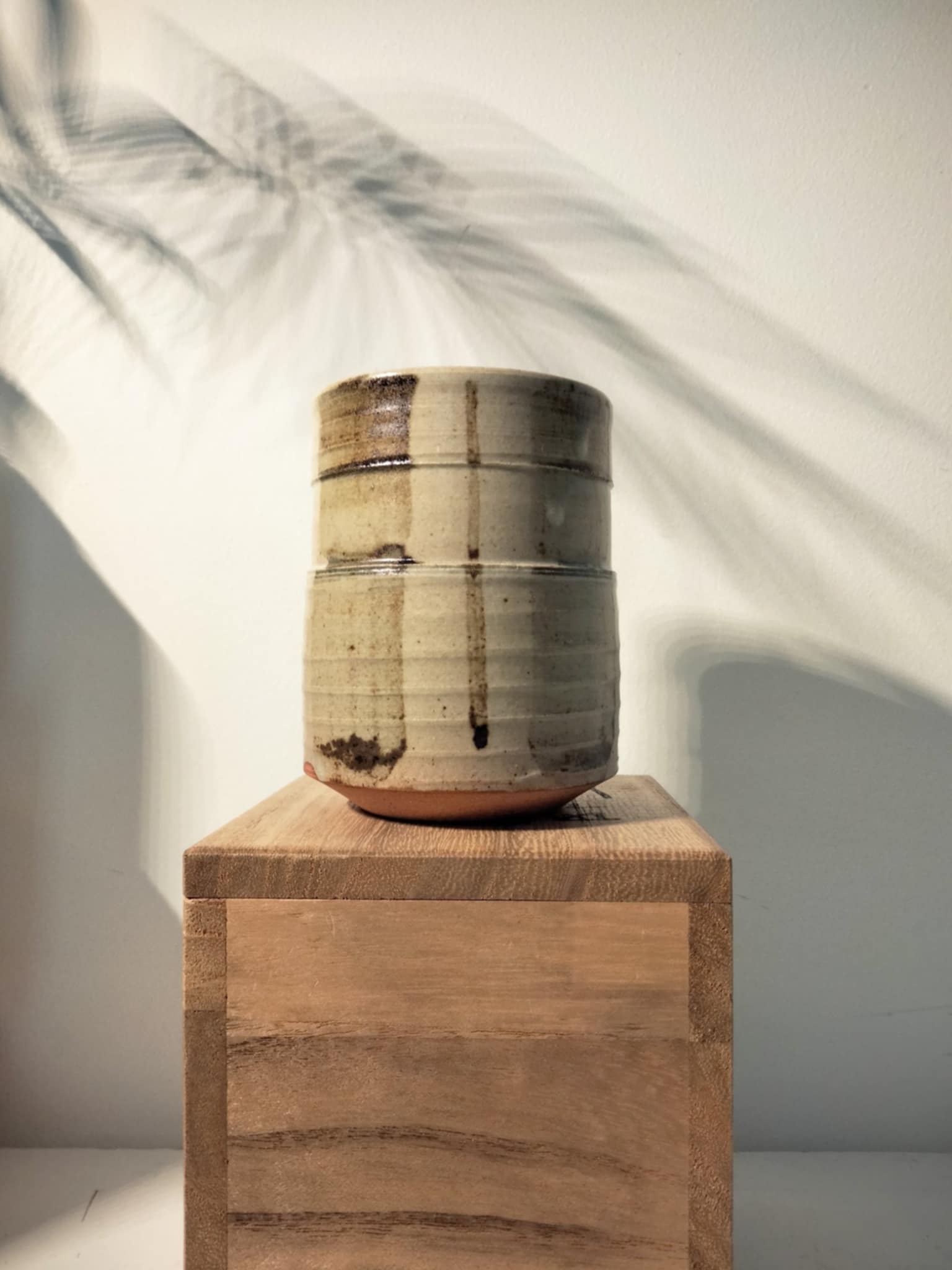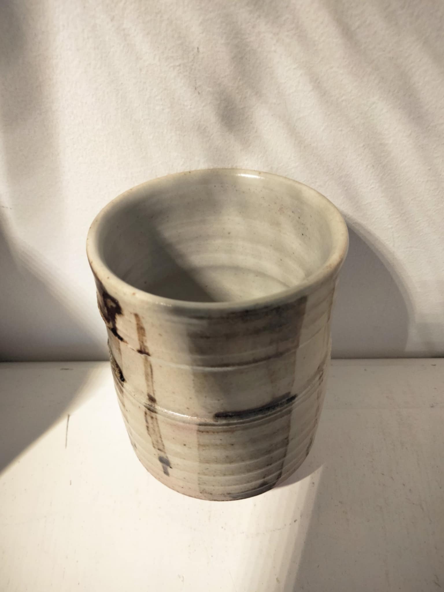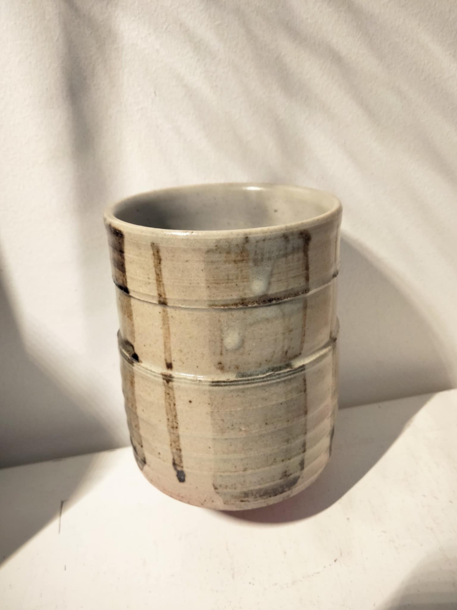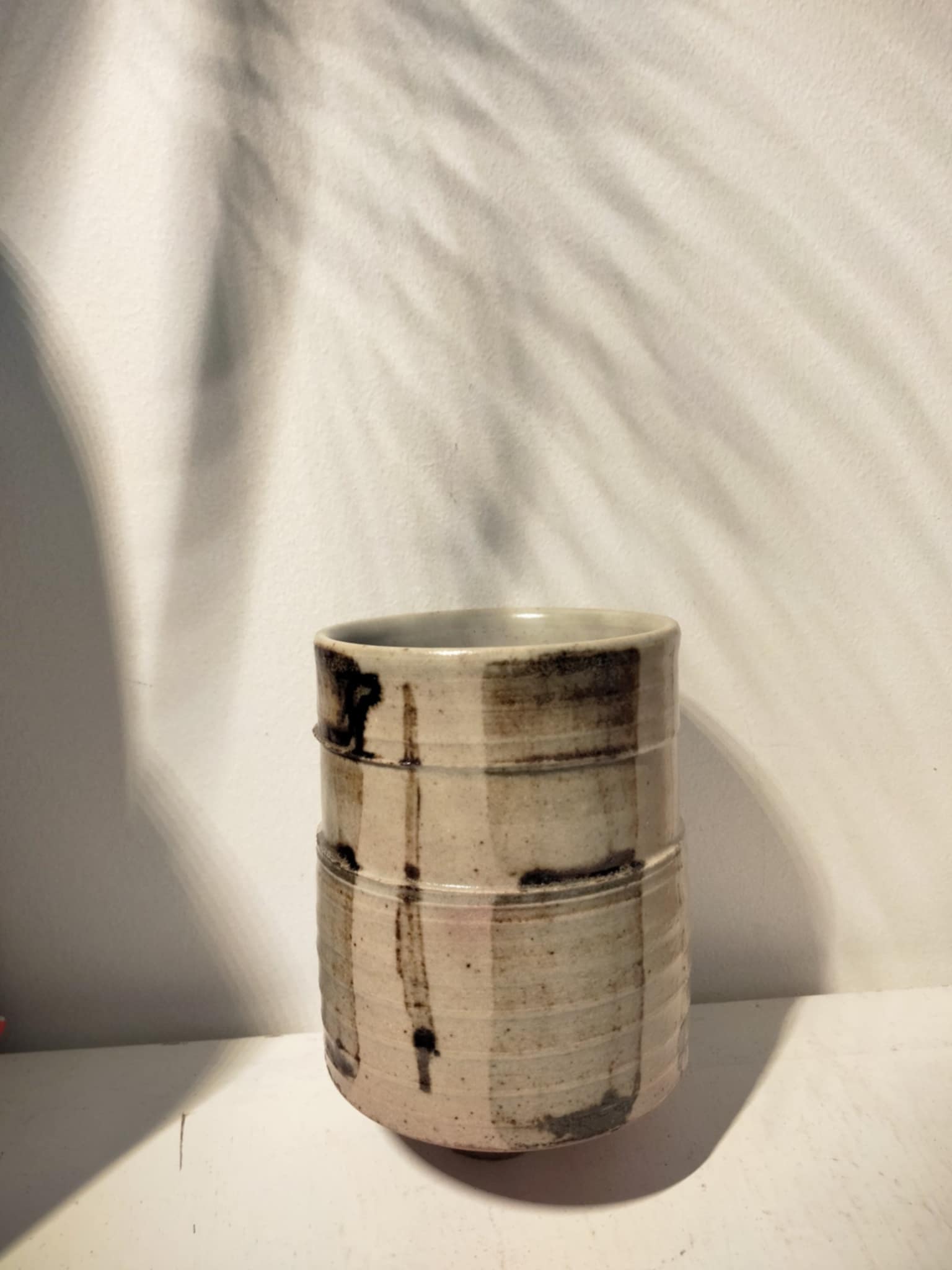 Magnifique petit pot à thé, vintage ( années 70 ) par Nagahama Kazuyoshi (b.1920) . Livré dans sa boîte avec notice, biographie et description du style Mumyoi-ware yunomi . D'une grande finesse, signé... 8cm, Ø 6 cm.