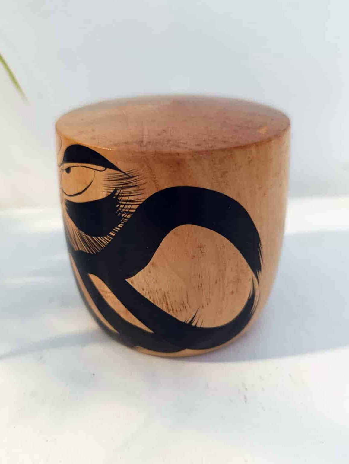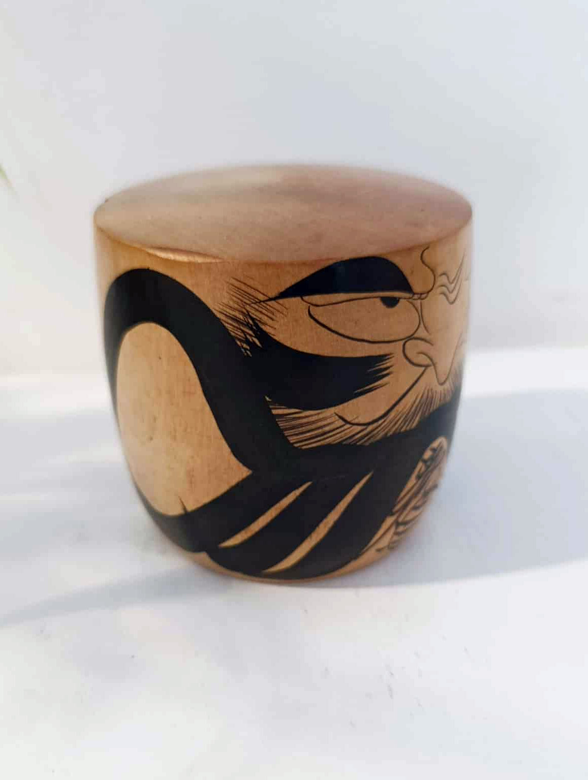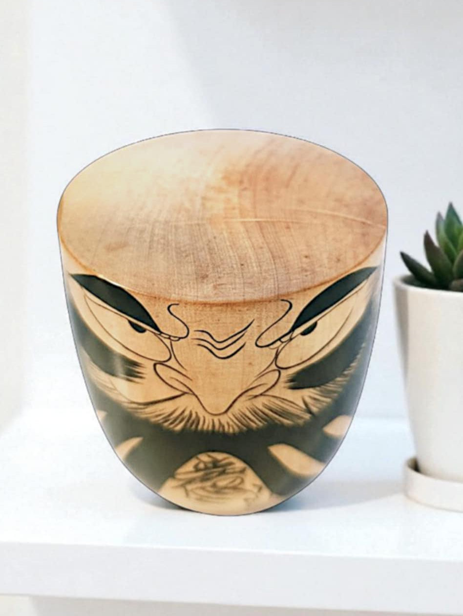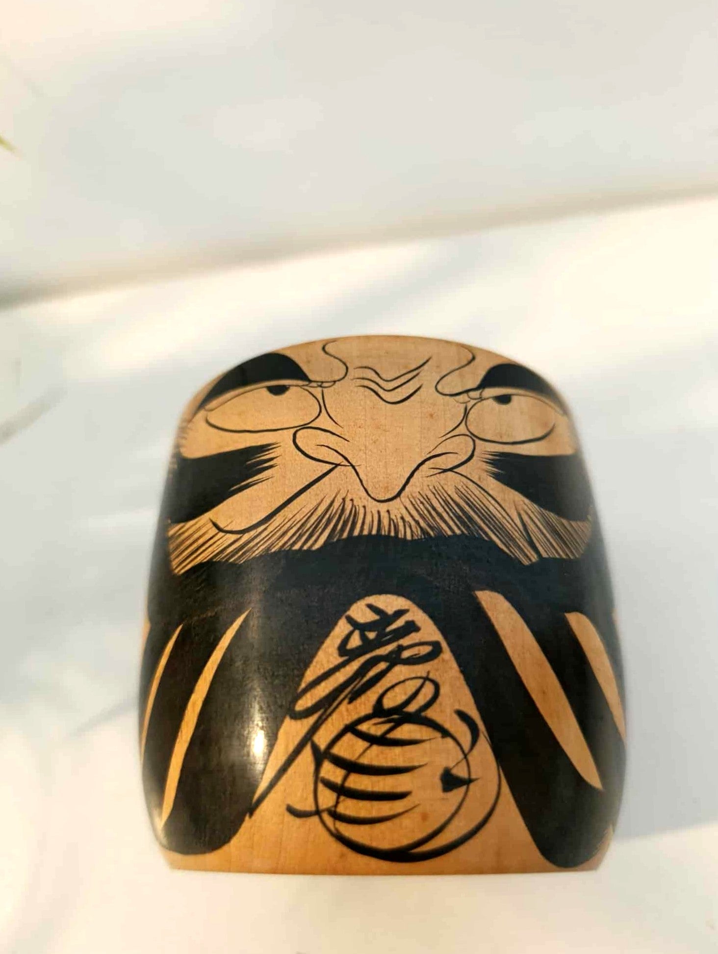 Daruma vintage par Sato Morimasa . Dans la culture japonaise, cette figure est un porte-bonheur qui symbolise la persévérance, la chance , le succès et qui éloigne par son regard menaçant les esprits négatifs... Hauteur 8 cm, Ø 8 cm, circonf. 27 cm , années 70.