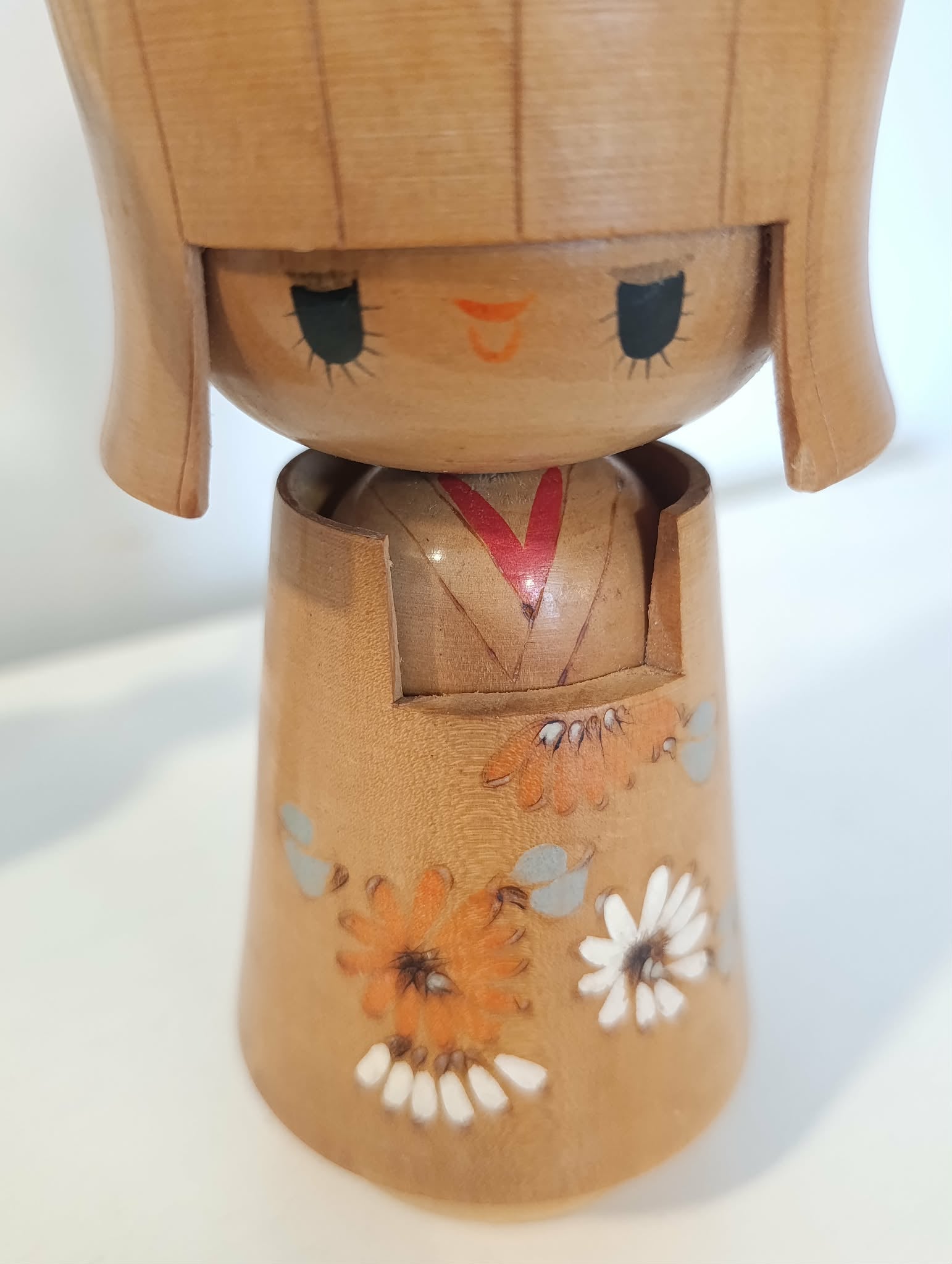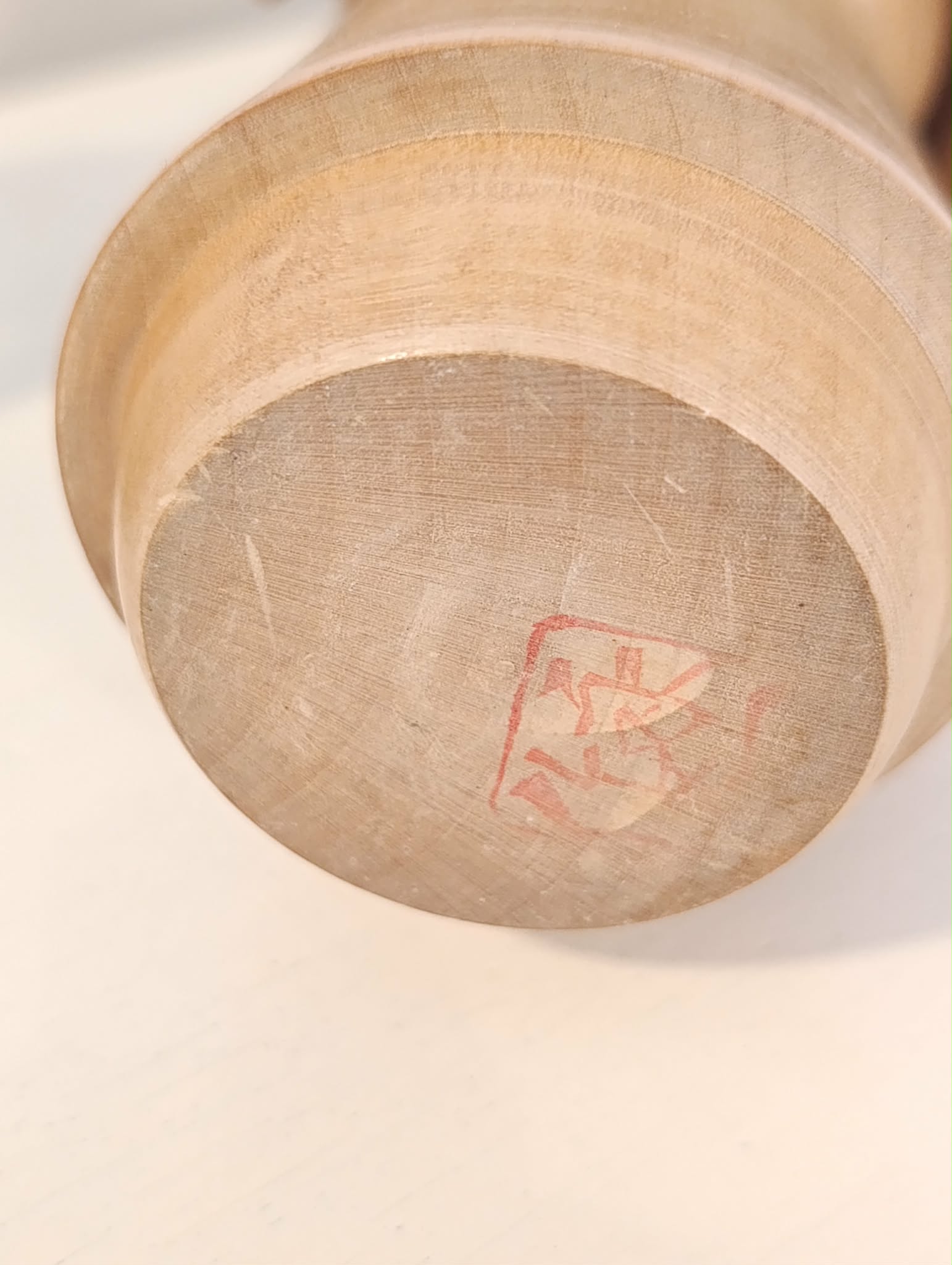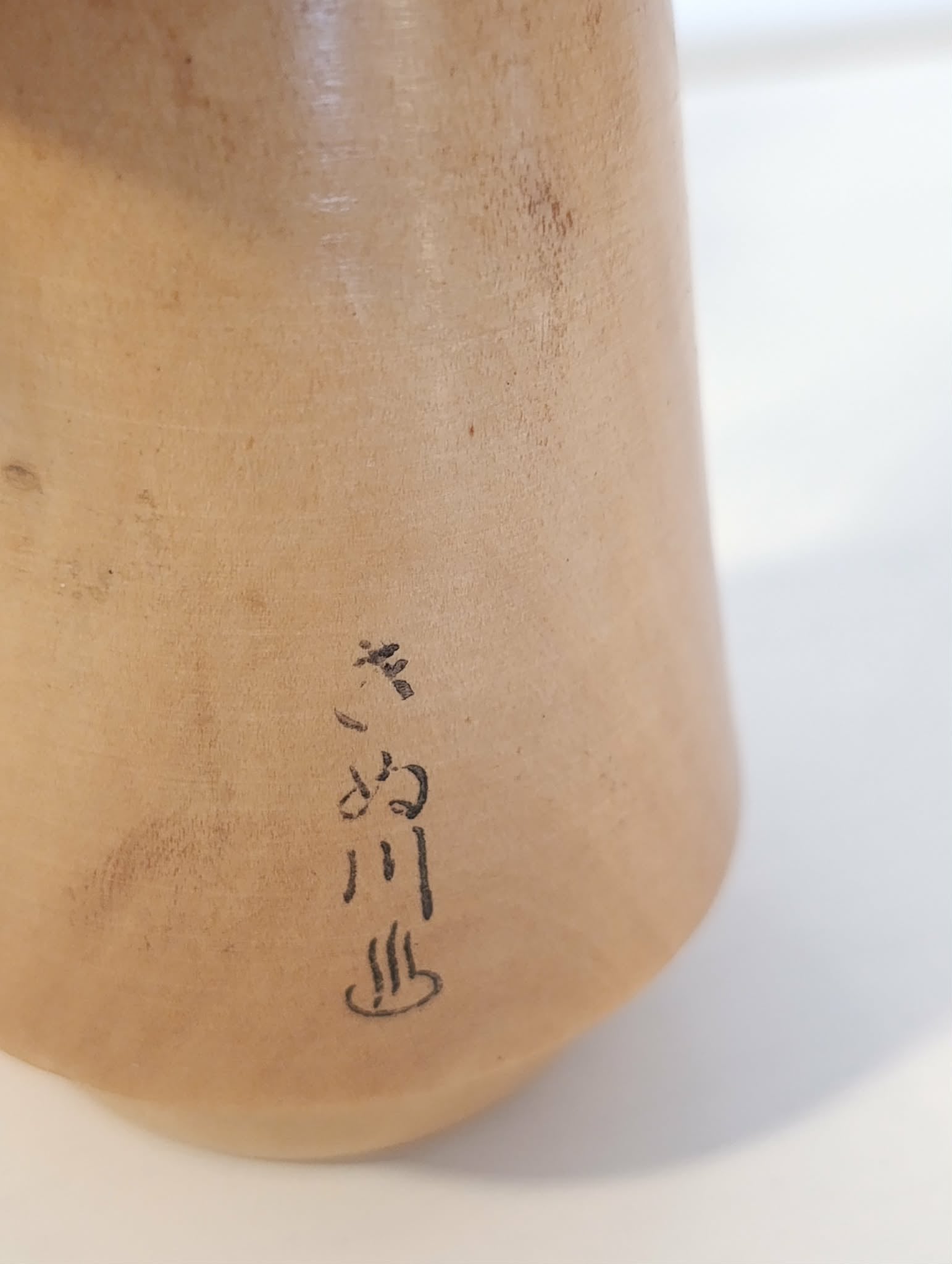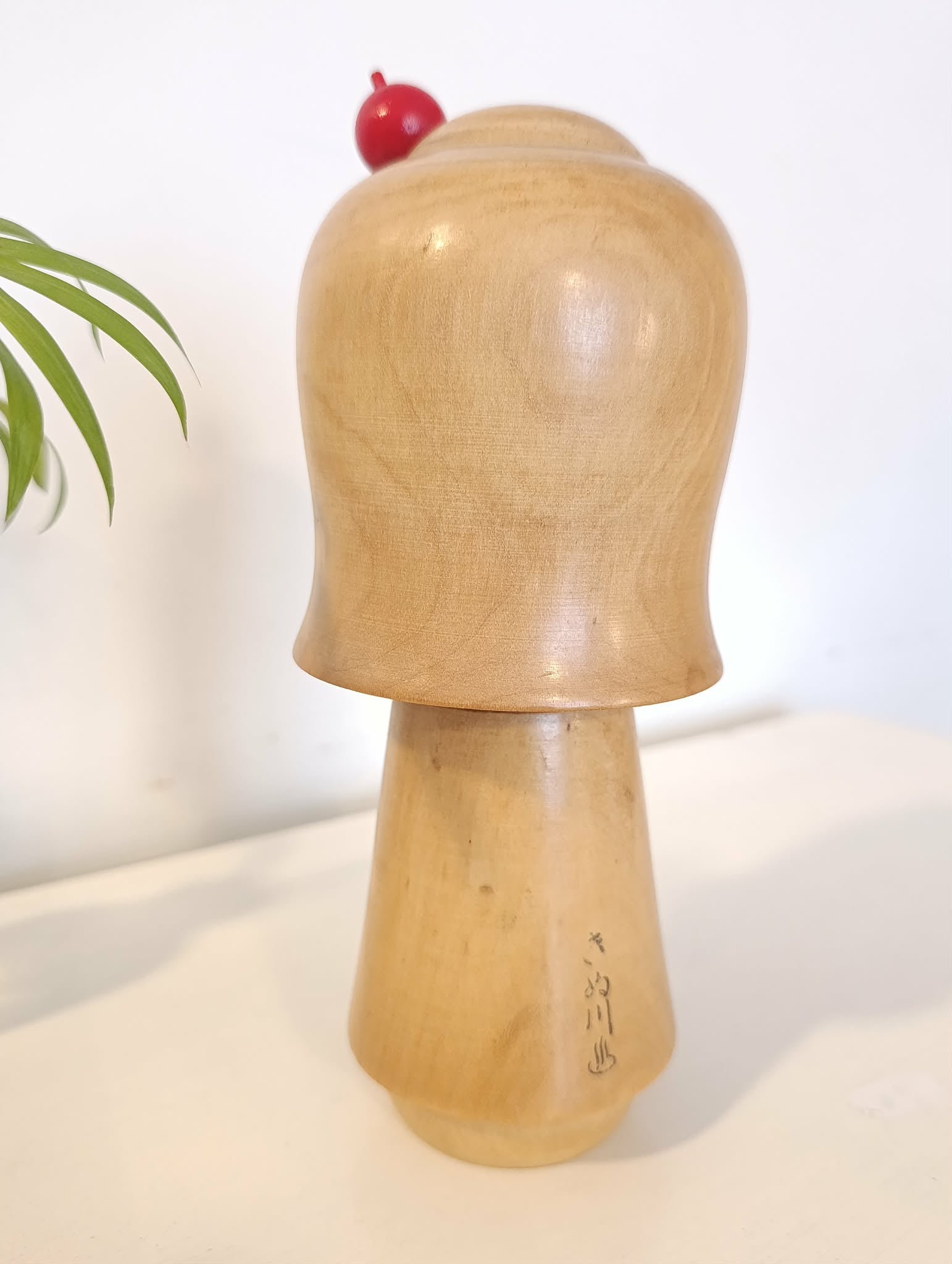 Kokeshi sosaku vintage, par Eic'hi Saku. Finement sculptée cette jolie poupée à la chevelure blonde bien dessinée , aux grands yeux naifs, est une beauté... Hauteur 20.5 cm, années 70.