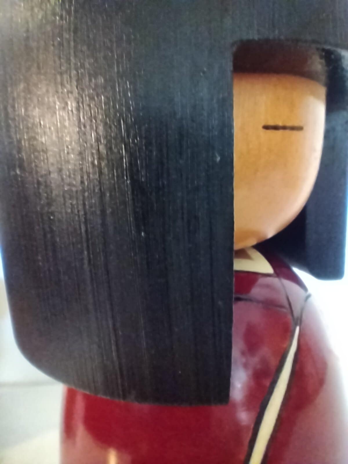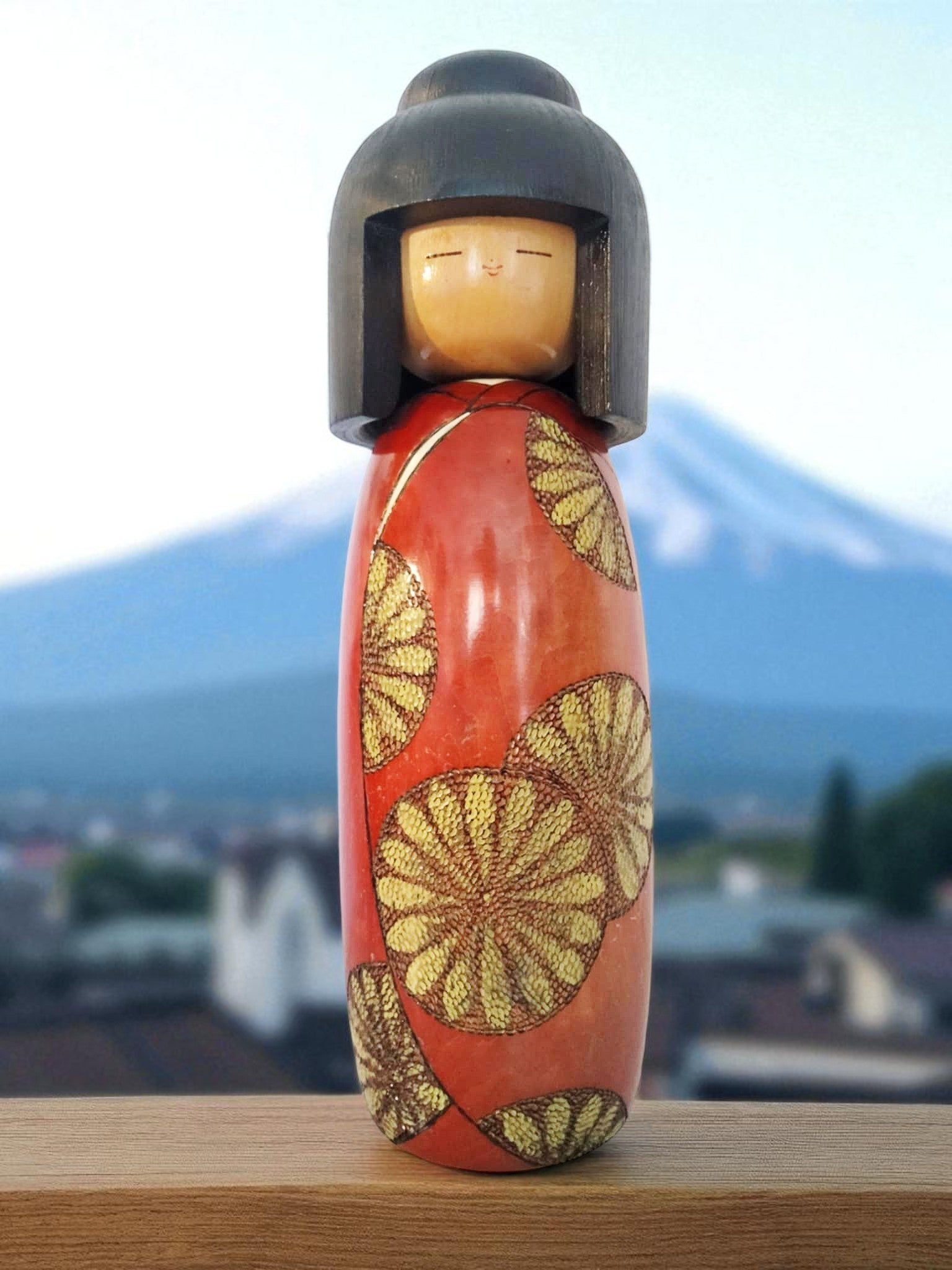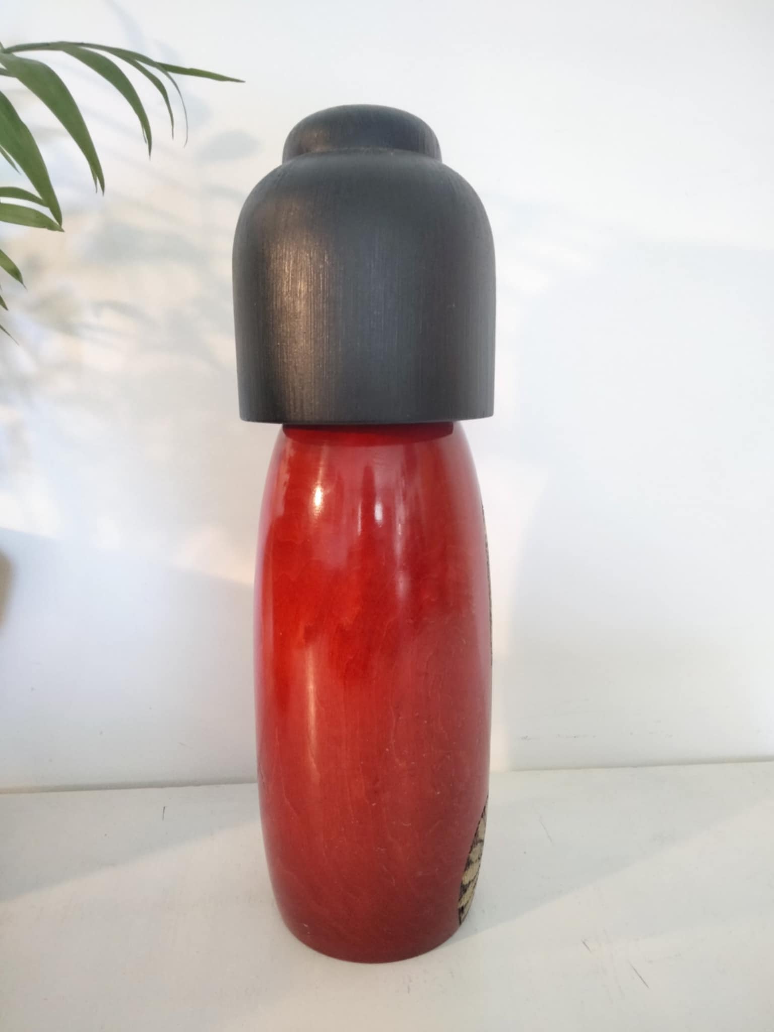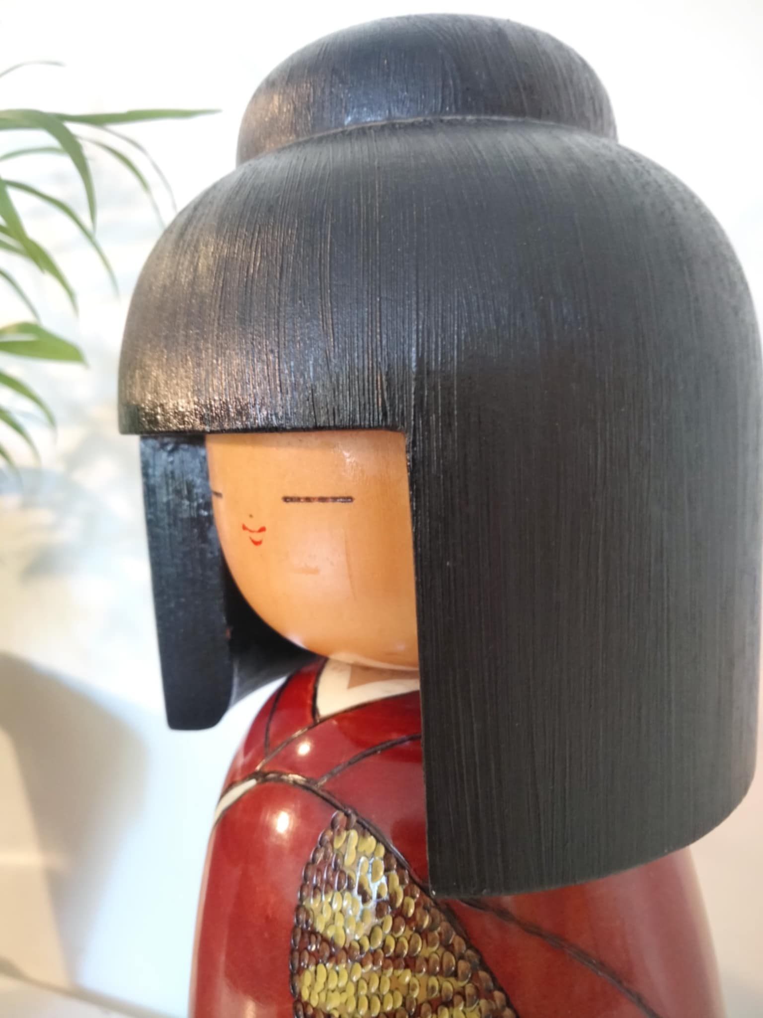 Très imposante (34cm/1kg400) kokeshi sosaku vintage , par le très rare Shoetsu . Magnifiquement et finement sculptée par l'artiste, elle impose par le choix des teintes et un laquage haut de gamme, sa classe et sa beauté rare. Années 80.