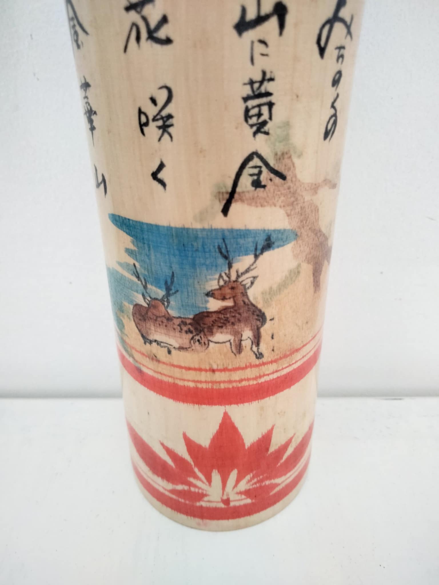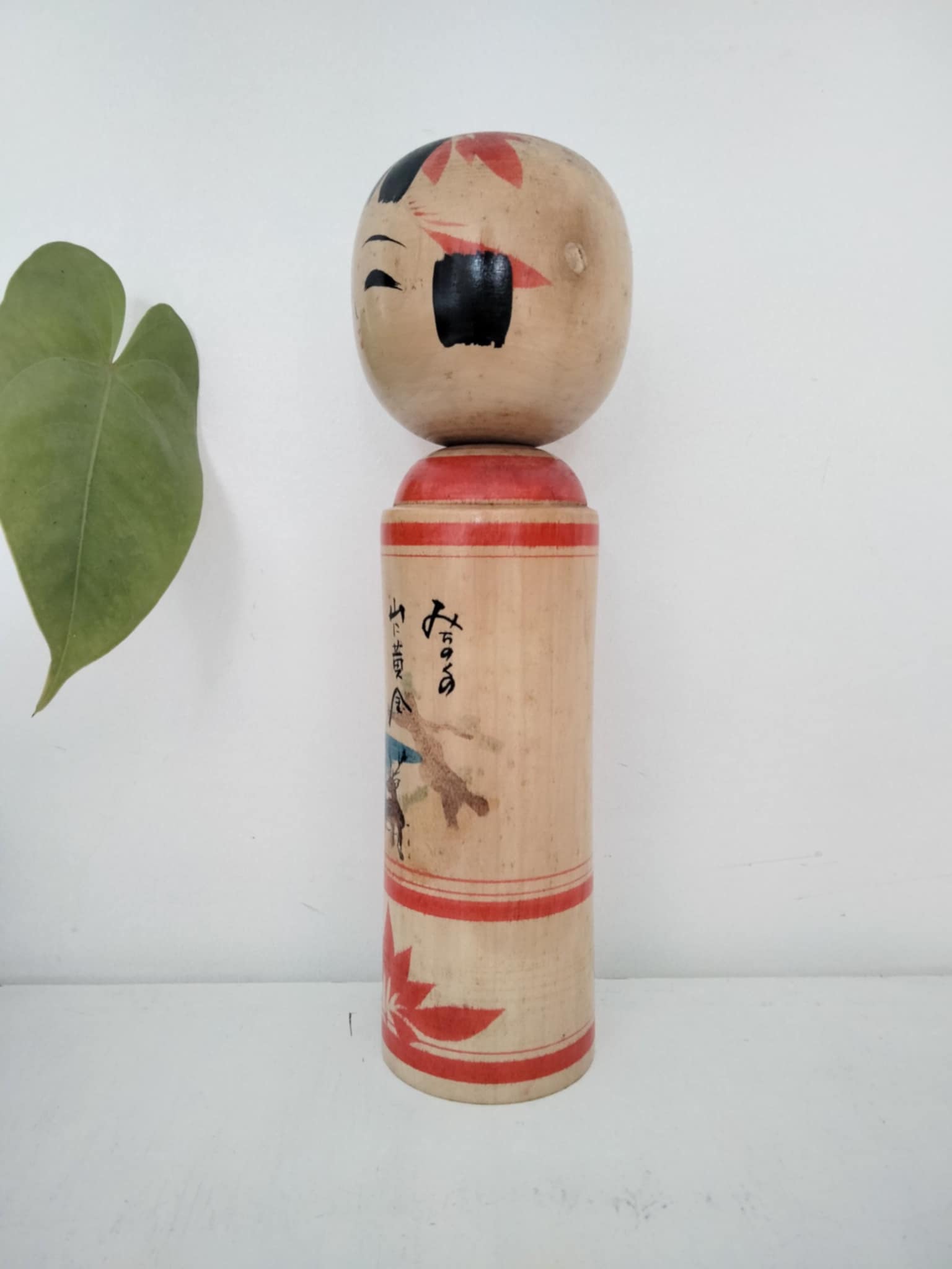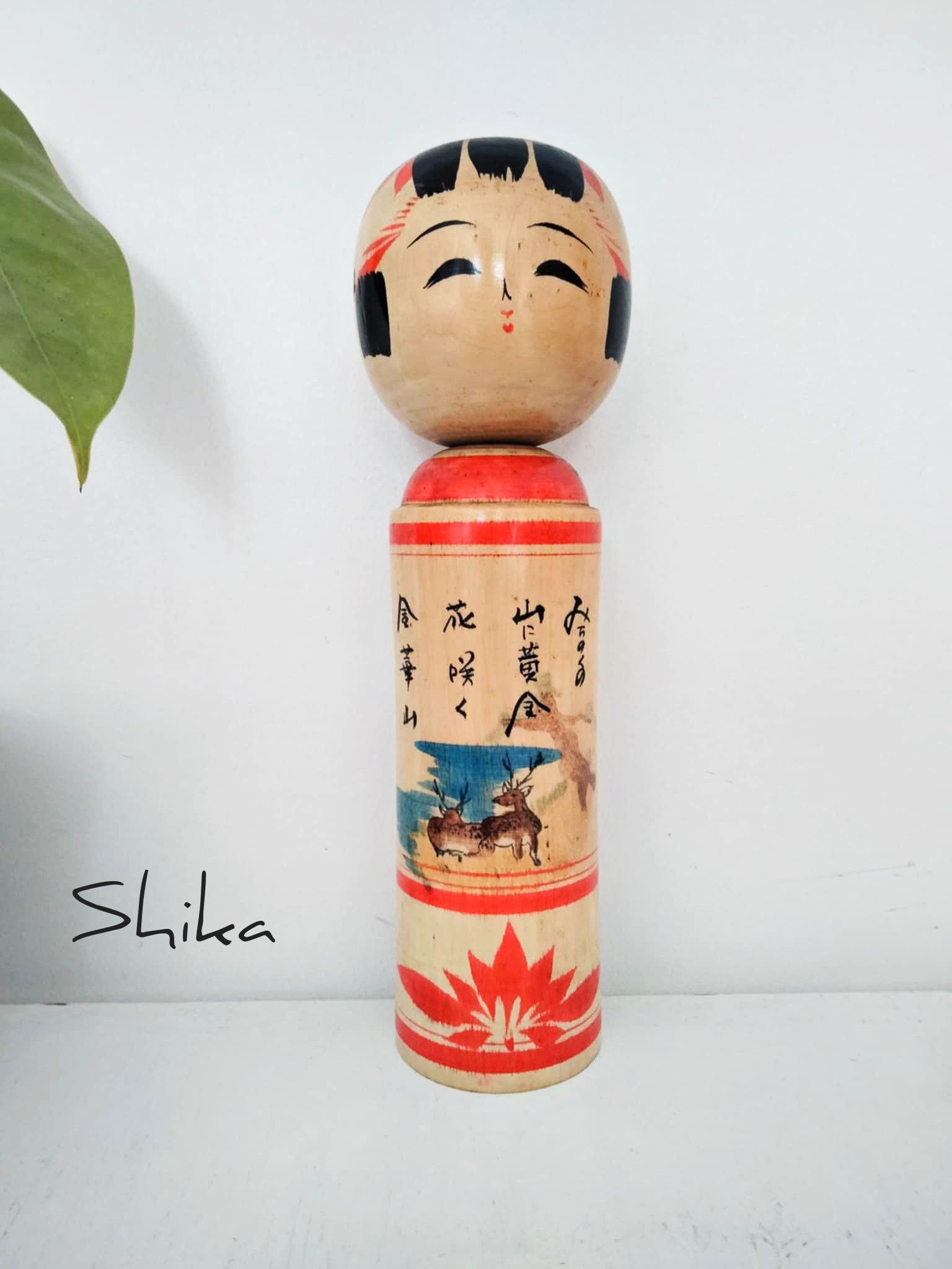 Kokeshi togatta vintage, originaire du mont Kinka. Le mont Kinka, anciennement « mont Inaba », est une montagne qui se trouve au centre de la ville de Gifu, préfecture de Gifu au Japon. Il s'élève à une altitude de 329 m et a longtemps servi de symbole de la ville de Gifu. Beau kimono orné de cerfs et d'un écureuil volant ... Années 80 . Hauteur 24 cm. L’écureuil volant du Japon, l’animal réputé comme étant le plus mignon au monde