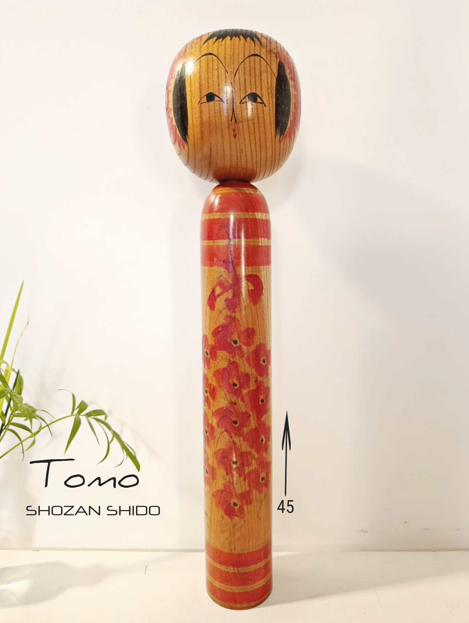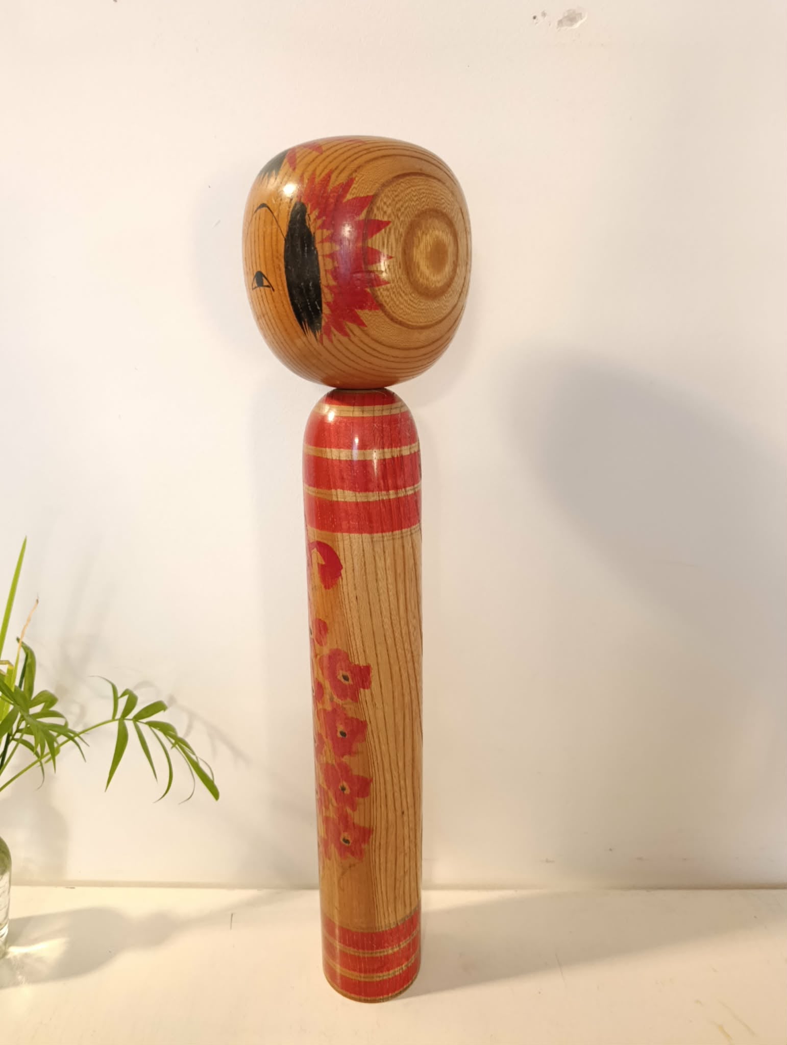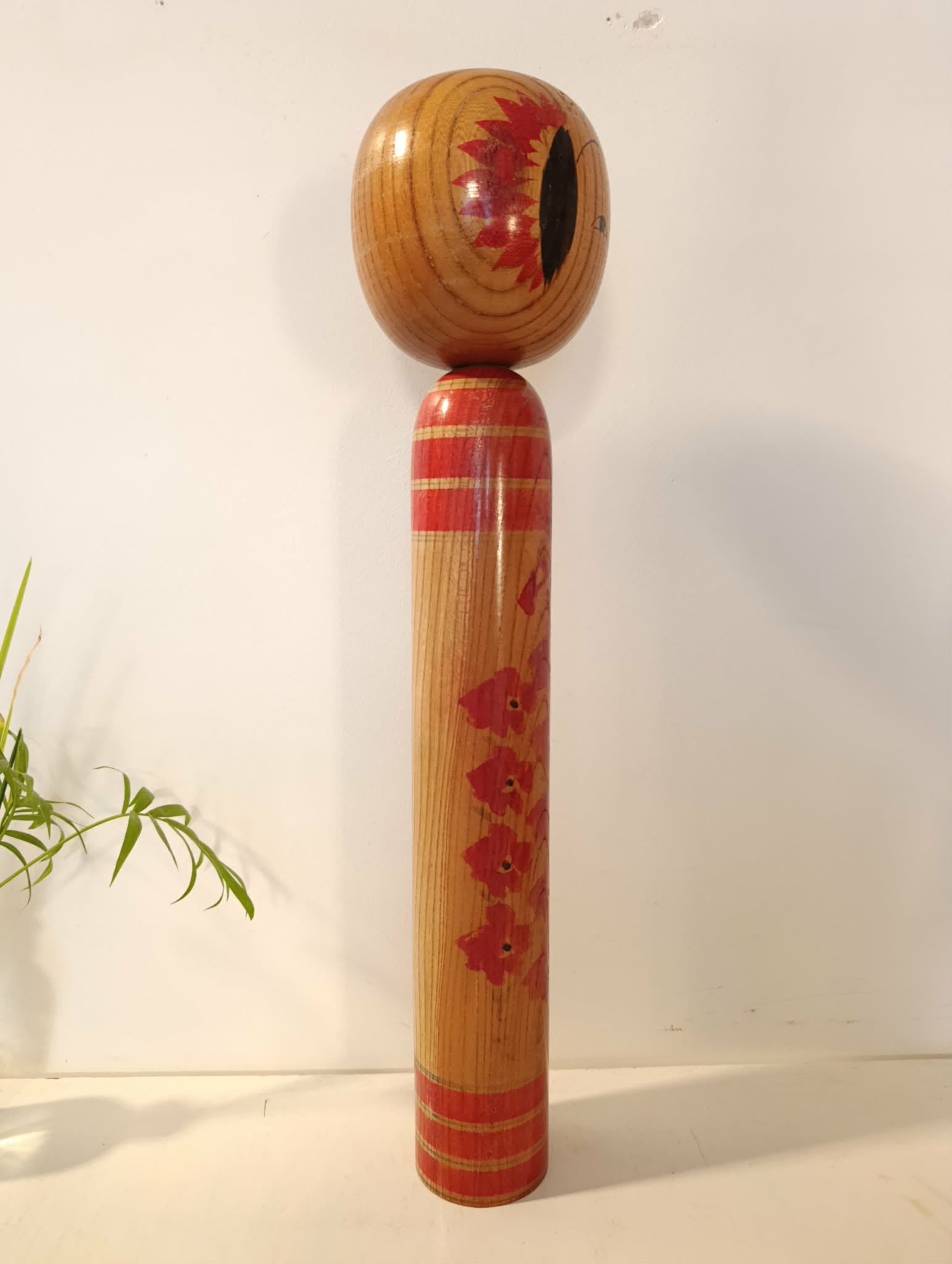 Kokeshi yamagata vintage, par Shozan Shido (1932-1995) qui débuta par la création de traditionnelles. Celle-ci, très élancée , culmine à 45 cm ! Parfait état pour cette beauté ! Années 70/80.