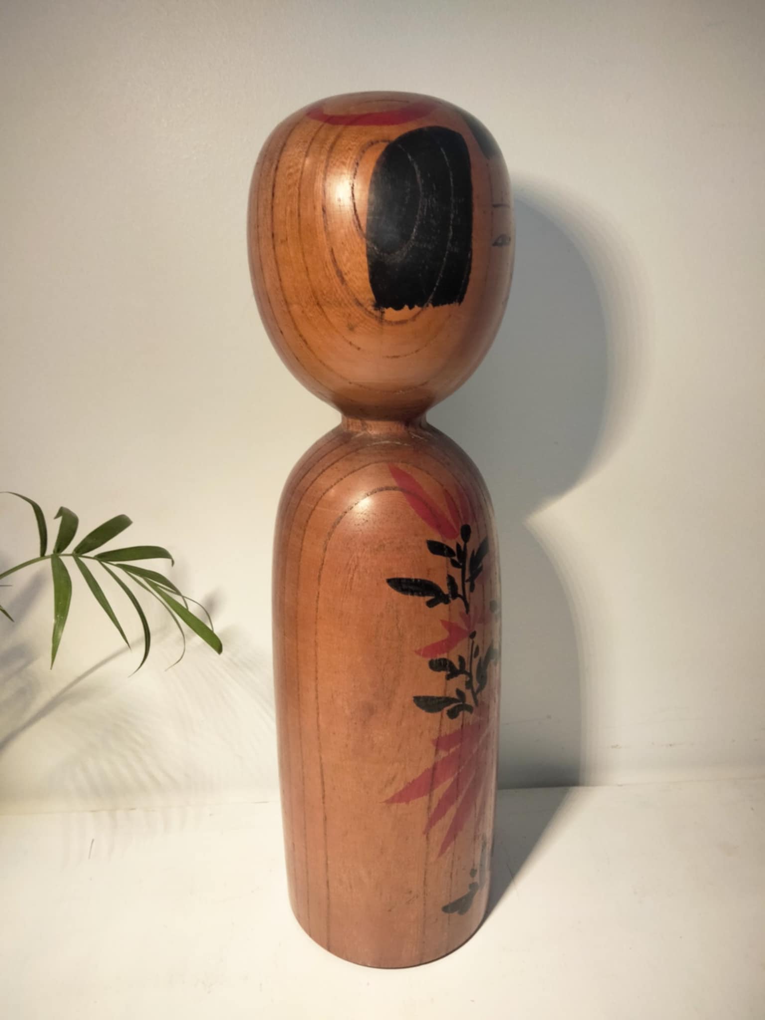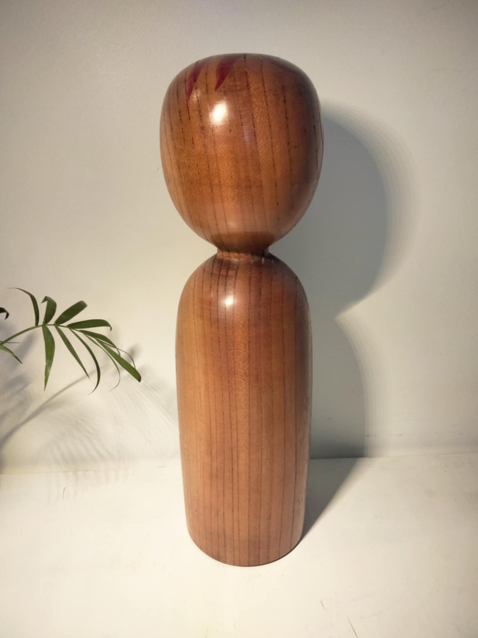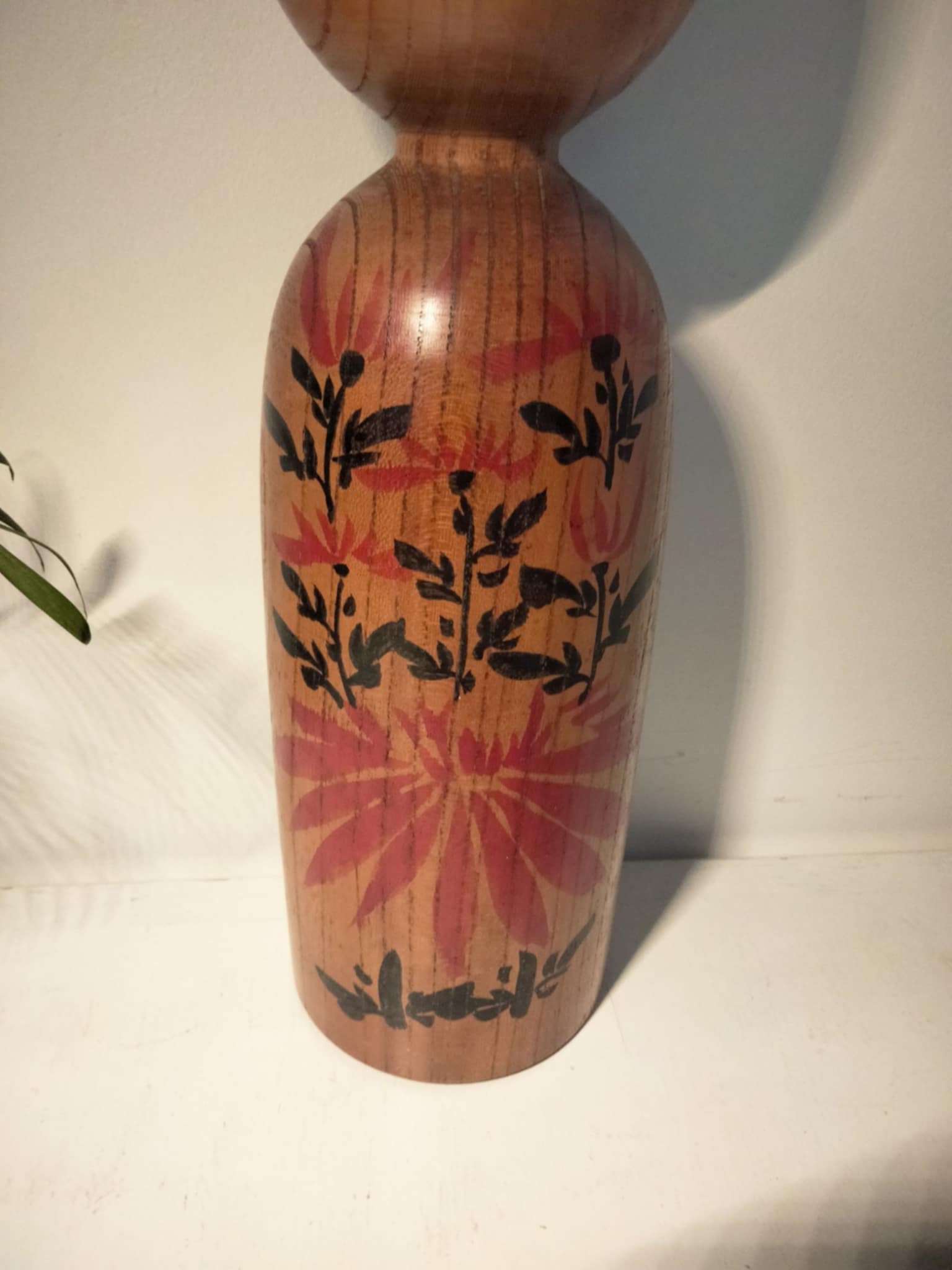 Très imposante kokeshi traditionnelle vintage, de style Kijiyama , par Kyutaro Ogura (1906-1998). Choix d'un bois très dense ( 1kg500 , 34 cm ) cette pièce bicolore, bénéficie d'une grande stabilité . Une beauté ! Années 70/80.