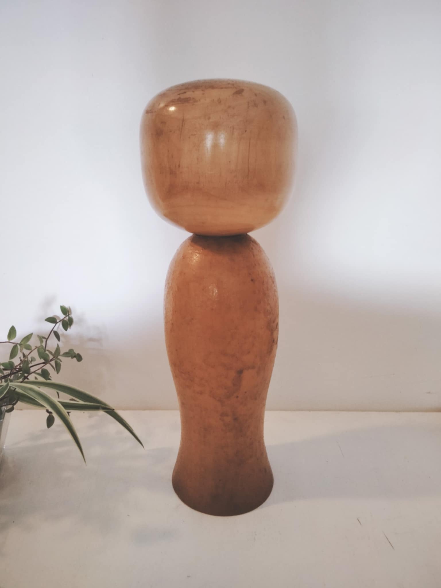 Imposante et étrange sosaku vintage, par Kiyohara Takao . On pourrait croire qu'il s'agit là d'une erreur de manipulation, quant au vernissage , et pourtant il n'en est rien. Le kimono granuleux de cette pièce assez rare , lui donne une originalité que l'on finit par apprécier ! Hauteur 30 cm, années 80.