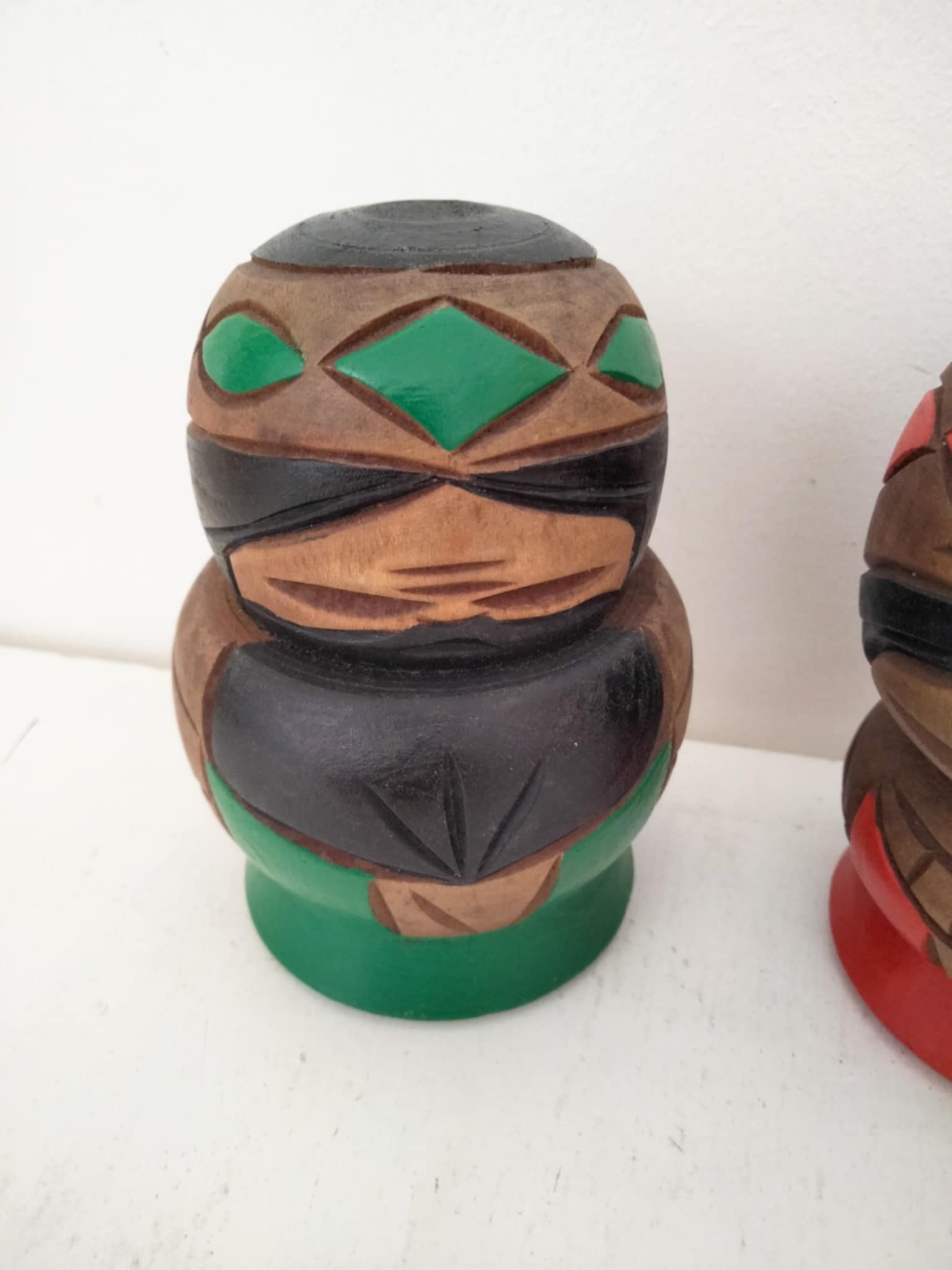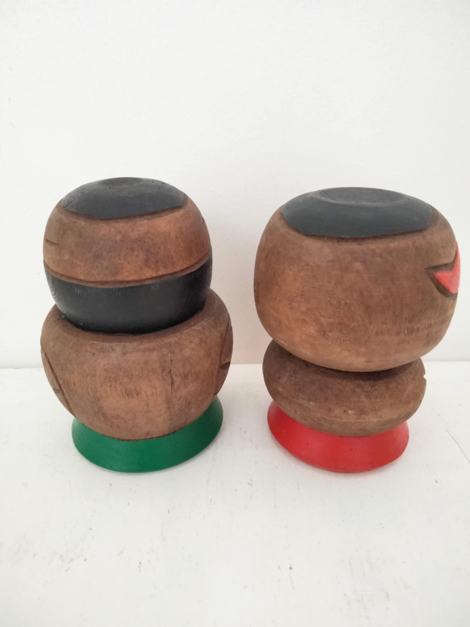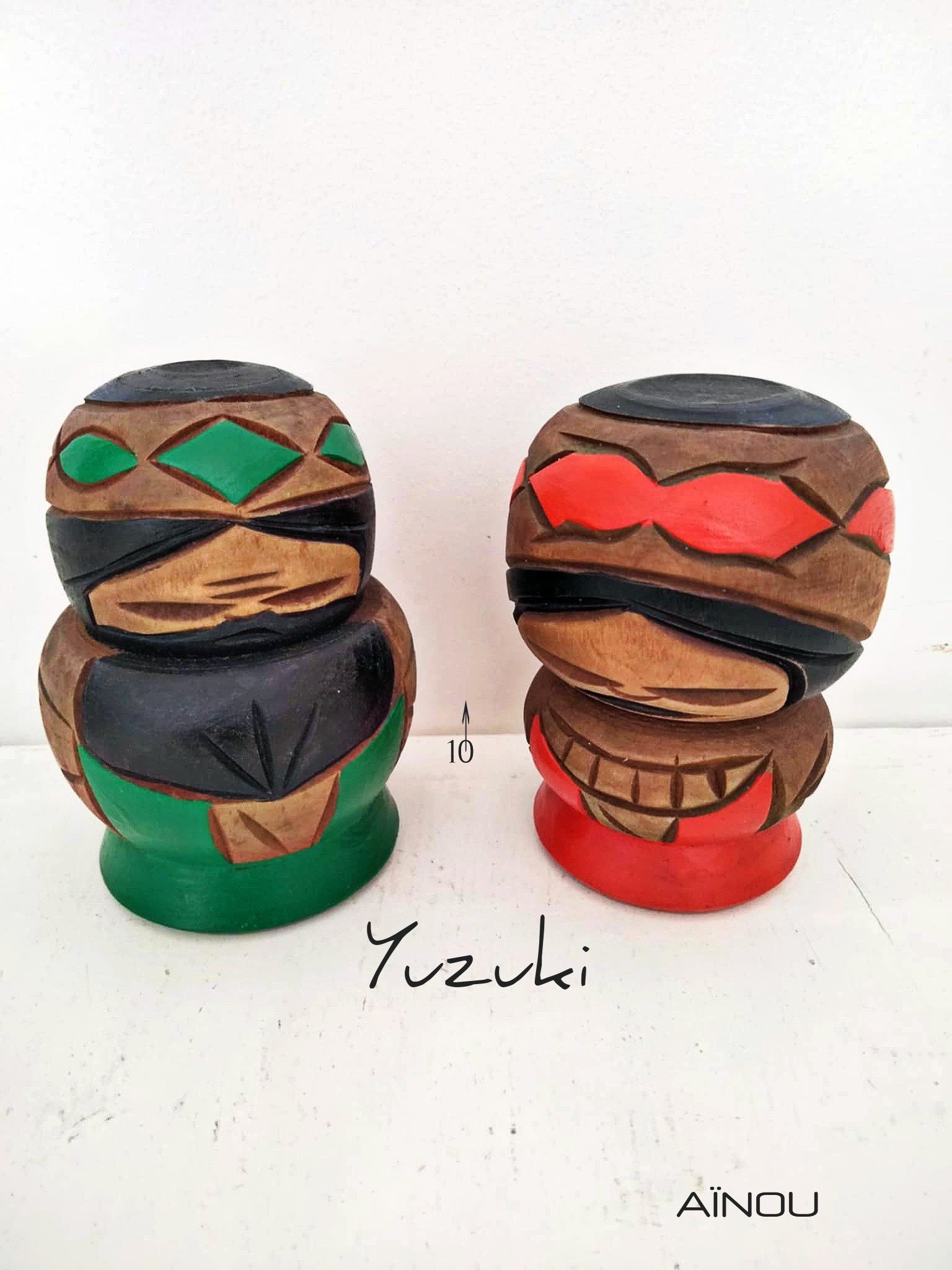 Couple Aïnou vintage. Les Aïnous sont un peuple autochtone originaire du nord du Japon, principalement établi sur l'île de Hokkaido, ainsi que dans certaines régions de Sakhaline et des îles Kouriles. Plus rustique , le style Aïnou est probablement le reflet de la vie difficile de ces peuples, colonisés. Hauteur 10 cm, années 60.